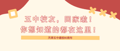 五中校友,回家啦! 你想知道的都在这里! 天津五中建校80周年 亲爱的校友,欢迎回家! 八十春秋,弦歌不辍。2025年的金秋时节,天津市第五中学将迎来80周年华诞。无论您毕业几许,行至何方,这片曾承载您青春梦想的校园,永远是您温暖的港湾。 在这镌刻着时光重量的时刻,诚邀您暂别日常的忙碌,重返五中校园。让我们一同漫步熟悉的教学楼,重温课堂上的求知时光;围坐畅谈青葱岁月的点滴,再续同窗挚友的深厚...