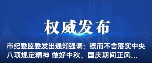 市纪委监委发出通知强调:锲而不舍落实中央八项规定精神 做好中秋、国庆期间正风肃纪工作