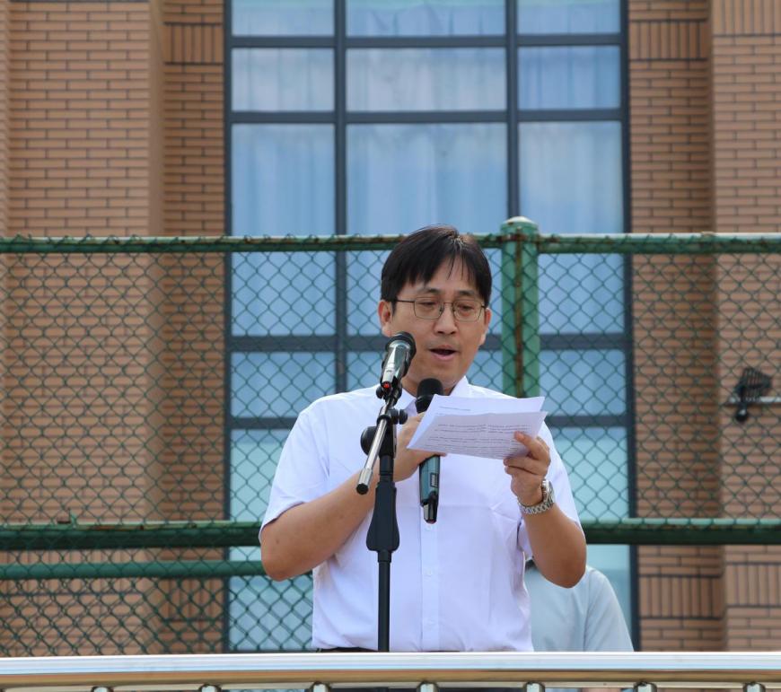 随后,王晓飞教授发表致辞。他首先对天津五中的信任表达感谢,再结合自身在人工智能领域的研究经历,向全校师生深刻阐述新时代科学教育的重要意义,鼓励同学们树立科学探索精神,主动拥抱科技发展浪潮,着力培养创新思维与实践能力。简洁有力的话语引发师生广泛共鸣,现场掌声阵阵。