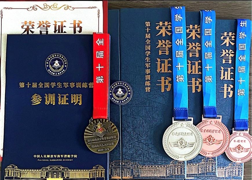 当青岛的海风拂过海军潜艇学院的训练场,当《少年中国说》的吟诵声回荡在闭营仪式的上空,来自天津五中的6名学子——阿卜杜拉、马恩焕、马晓芸、库地热提江、乃斯拜、何睿作为天津市为数不多的中学生代表,圆满完成了第十届全国学生军事训练营的14天淬炼之旅。他们身着迷彩服、肩扛使命感,以国旗班骨干的硬核素养、多民族少年的同心之姿,在深蓝海疆书写了属于天津五中学子的青春答卷。