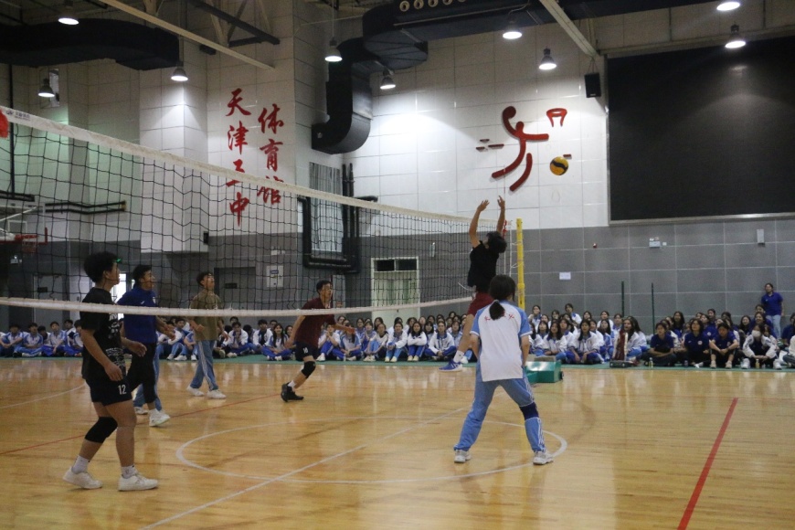 10月2日下午由孙铭健老师组织的排球友谊赛场面更是精彩纷呈。运动员们团结协作,奋力拼搏,一次次精彩的配合更是引来场边师生的阵阵欢呼。在同学们呐喊助威声中,运动员们赛出了风格,赛出了水平,也赛出了友谊。
