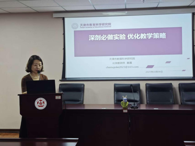 通过专家引领+教研联动,聚焦核心素养落地,特邀天津市教育科学研究院课程中心高中化学教研员秦磊老师做《深剖必做实验 优化教学策略》的讲座。
