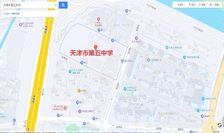 学校地址:天津市红桥区团结路6号(天津市第五中学正门)