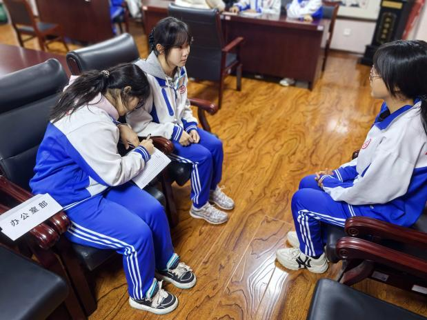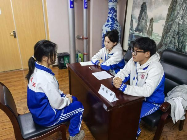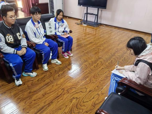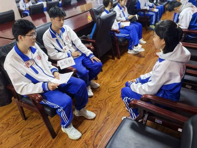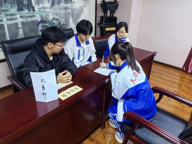 活动前期,学生会干部通过宣讲会向新高一同学详细介绍了各部门职能,从活动策划到志愿服务,从宣传设计到活动特色,丰富的学生工作内容激发了新生的参与热情。纳新当天,百余名新生带着精心准备的自我介绍与对学生会工作的期待走进面试现场。面对学长学姐的提问,同学们自信大方、思路清晰,既展现了个人特长与能力,也表达了对服务集体、锻炼自我的热忱。面试现场秩序井然又充满活力,新生们或幽默风趣,或严谨认真,充分彰显了五中学子积极进取的精神风貌。