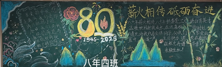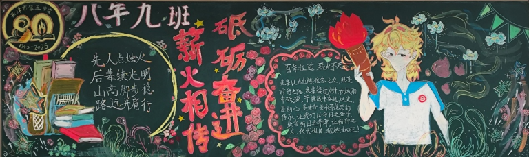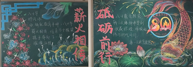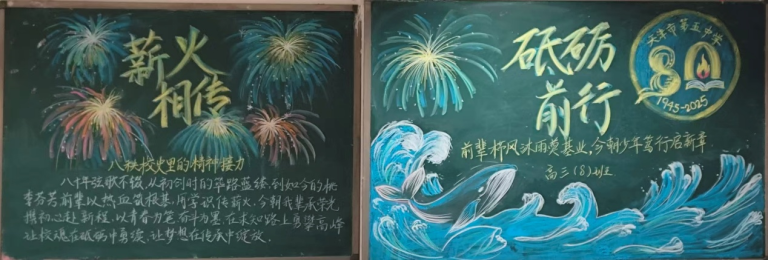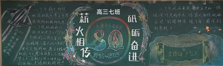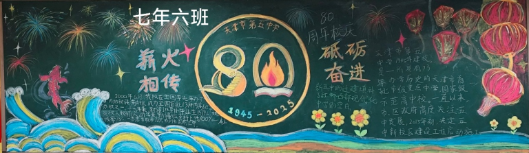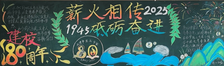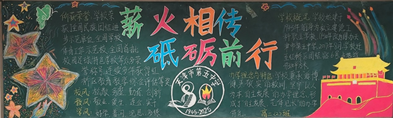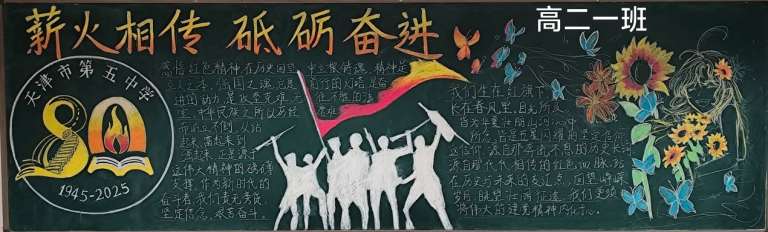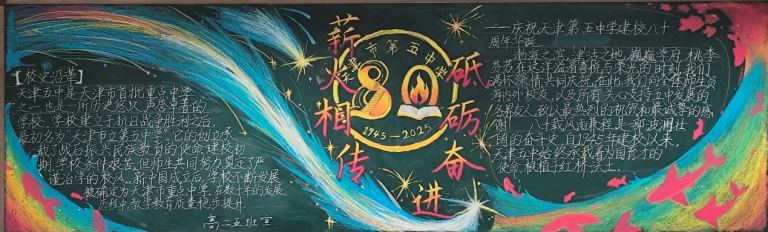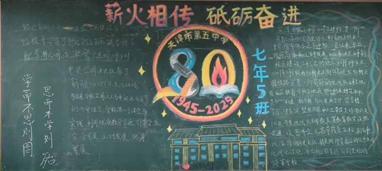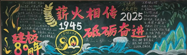 近日,为顺利开展建校80周年活动,营造浓厚的文化氛围,天津市第五中学举办了以“薪火相传 砥砺奋进”为主题的板报评比活动。全校初、高中六个年级均积极参与,利用课余时间精心创作,为母校献礼。