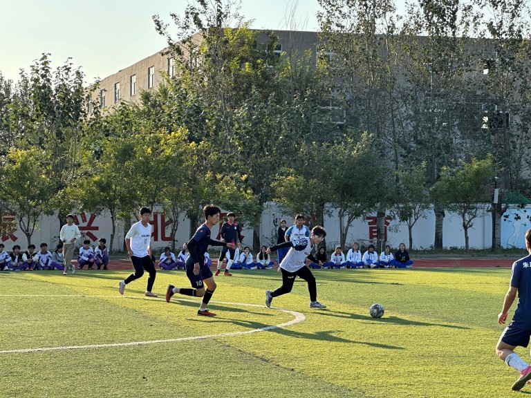 签约仪式后,一场精彩的足球交流赛在朱唐庄中学足球场拉开帷幕。双方队员在绿茵场上奋力拼搏,传球、带球、射门,每一个动作都展现出运动员的活力与激情。场边,两校领导和教师们驻足观看,为队员们加油助威,现场气氛热烈。此次足球交流赛不仅是技能的切磋,更是两校学子友谊的纽带,在竞技中传递了体育精神,深化了校际情谊。