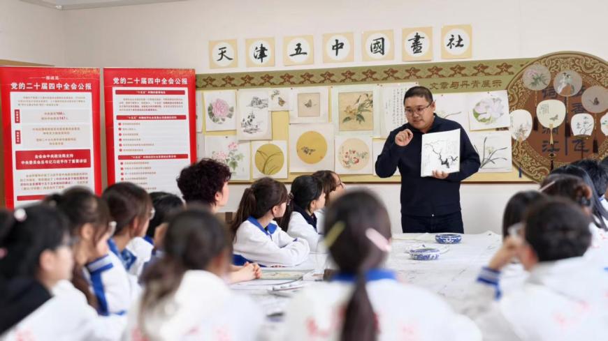 在“自主发展,艺体见长”办学特色引领下,天津五中作为天津市文联艺术家实践基地、天津市教师书画院红桥分院、方欣美术教师团队书画活动基地,充分引进市、区优质文化艺术资源,全力打造美育特色学校。学校邀请艺术领域的名家大师走进五中课堂,让学生近距离感受中国传统艺术的博大精深,在文化传承与交流中,搭建起一座跨越地域、连接心灵的艺术桥梁。天津五中副校长张士举表示,此次活动为学生搭建了近距离接触传统艺术的优质平台,尤其为新疆班学生提供了深入感受津派文化、领悟书画魅力的难得契机。红桥区文化馆副馆长范鹏表示,基层文艺辅导是“文化惠民”的重要实践,未来将持续深化与五中的合作,让艺术之美在五中校园绽放更多光彩。天津五中美术组组长王蓉全程组织协调,为活动提供了有力保障。