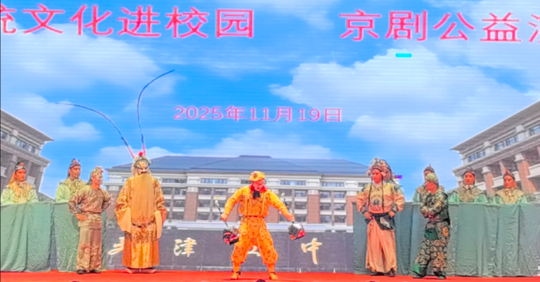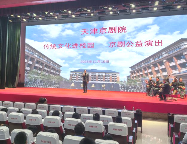 2025年11月19日,天津市第五中学礼堂内弦歌不绝、锣鼓铿锵,一场别开生面的“传统文化进校园”京剧公益演出在此精彩上演。在教育局精心组织安排下天津京剧院的艺术家们分别为天津市第五中学、河工大实验学校、红星职专及师范附小四所学校的师生,带来了沉浸式的传统文化盛宴,让国粹艺术在青春校园里焕发新生机。