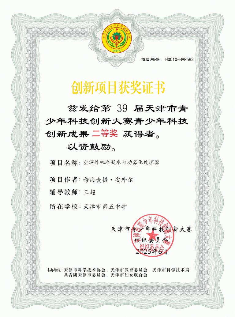 近日,从各级科技创新赛事传来喜讯,天津市第五中学学子在2025年度科学创新领域斩获多项荣誉,充分展现了学校科学教育的卓越成果与学生的创新实践能力。