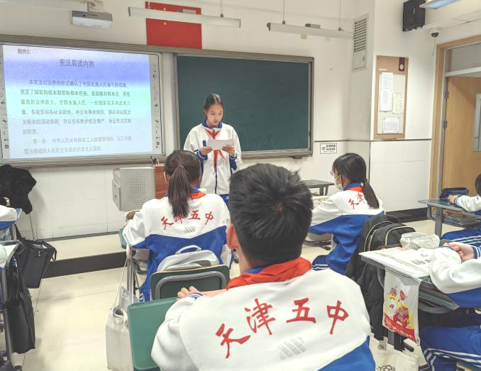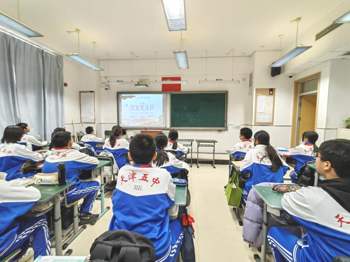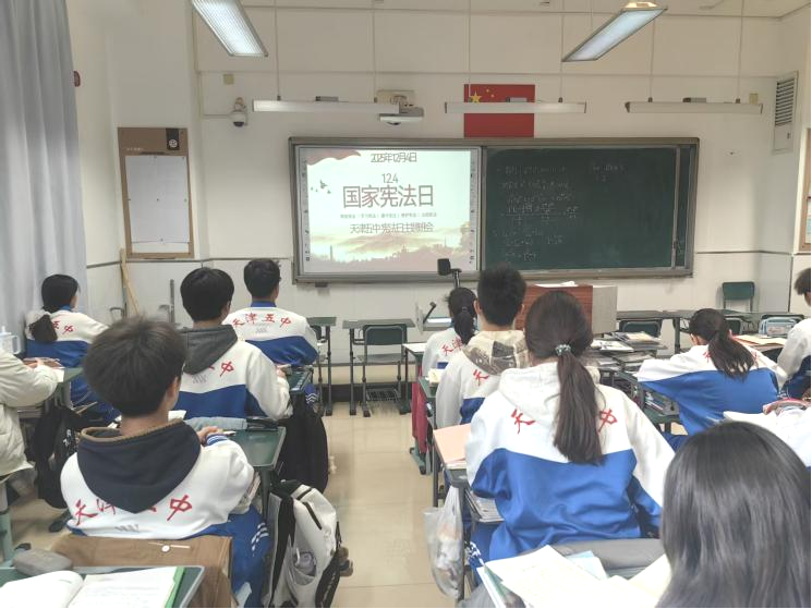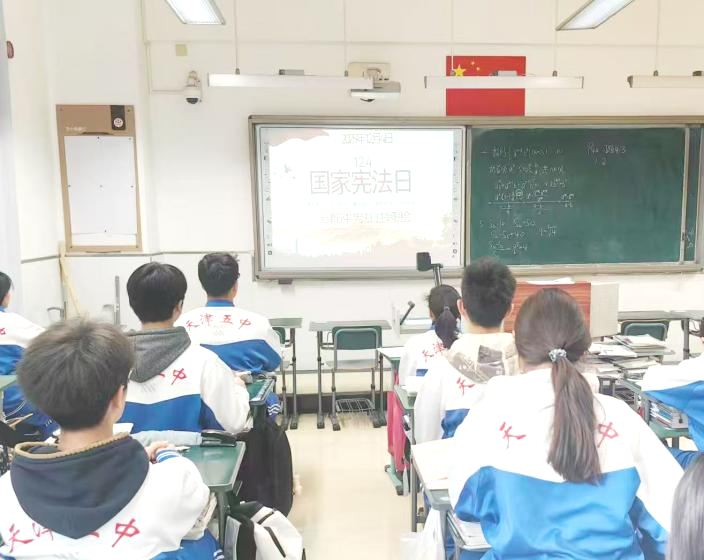 2025年12月4日,第十二个国家宪法日之际,天津市第五中学以“学习宣传贯彻习近平法治思想,推动宪法深入人心”为主题,通过一系列的教育实践活动,让宪法精神在校园落地生根。