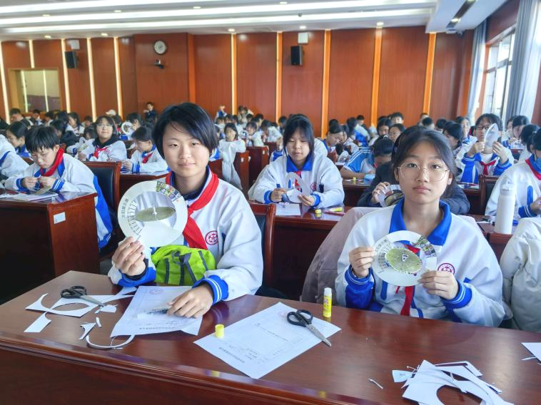 “太阳黑子竟比地球还大?” 讲解员揭秘恒星生命周期后,同学们亲手组装“太阳演示器”。当自制模型亮起暖黄光芒,抽象知识瞬间鲜活!