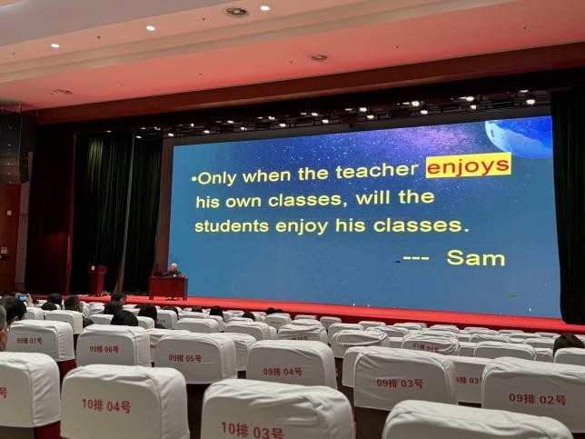 石庆富老师则以“费曼学习法 语法解放”为主题,提出将费曼学习法融入英语语法和词汇教学,帮助学生摆脱机械记忆,实现语法知识的灵活运用,石老师创新的教学思路和幽默的讲解方式引起了在场老师们的极大兴趣。