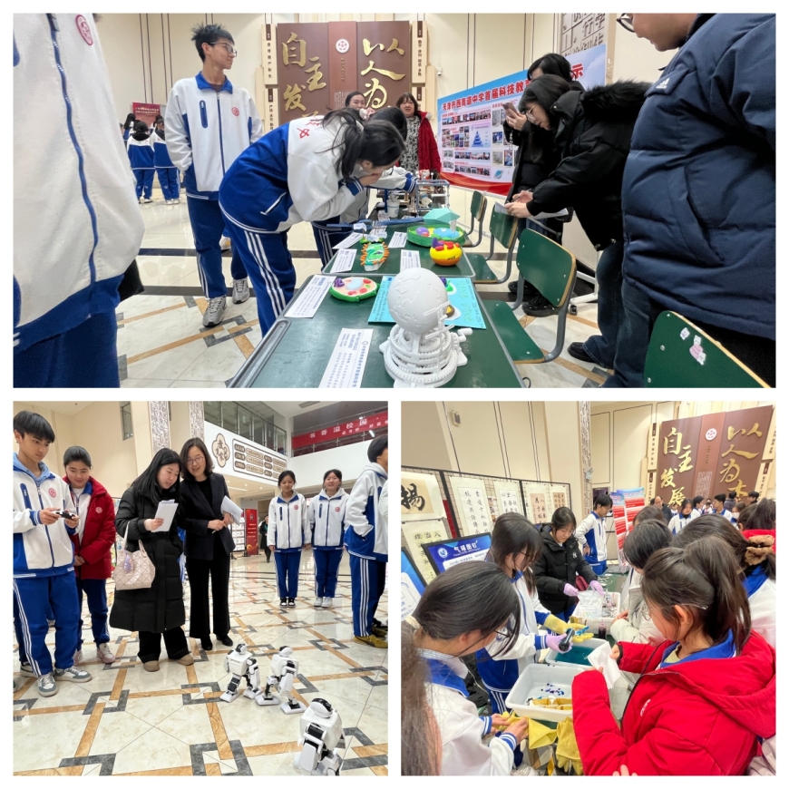 此外,会场外的大厅设置了成果展区与体验区,四所学校的学生展示了各类科技作品和趣味体验项目,让同学们在互动中感受科学乐趣、交流学习心得。
