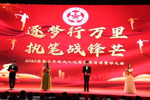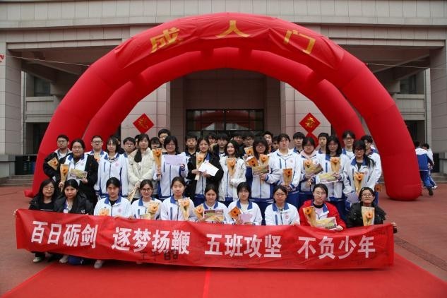 十八成人,责任在肩;百日誓,锋芒尽显!愿天津市第五中学2026届全体高三学子,以青春为笔,以汗水为墨,不负师长嘱托,不负家人期盼,不负少年热血。披荆斩棘,乘风破浪,决战百天,决胜六月!用拼搏书写辉煌,用实力铸就荣光,今朝立下凌云志,明日金榜题名时!